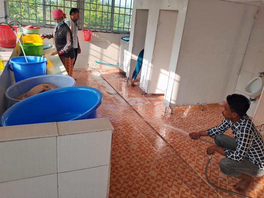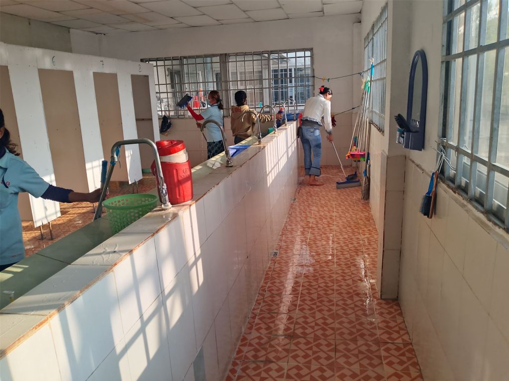 ជារៀងរាល់ព្រឹក យើងប្តូរវេនគ្នាសម្អាតបង្គន់ ដើម្បីរក្សាបរិយាកាសប្រកបដោយផាសុកភាព និងអនាម័យ។