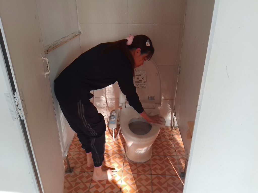 Every morning, we take turns cleaning the toilets to maintain a comfortable and hygienic environment.