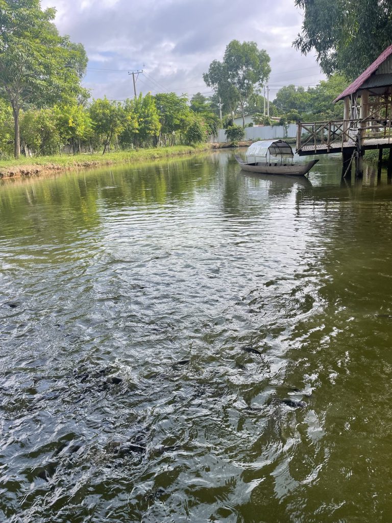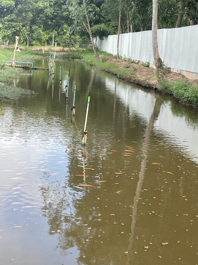 ការលូតលាស់របស់ត្រីក្នុងស្រះក្បែរសួនបន្លែ រយះពេល2ខែ ។ យើងយកទឹកស្រះសំរាប់ស្រោចស្រព បន្លែ រីឯ សំណល់បន្លែ ប្រើជាចំណីត្រីផងដែរ។
