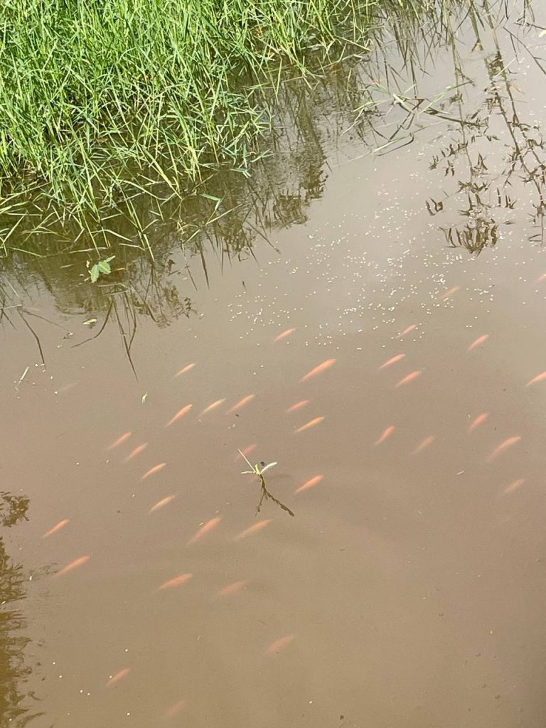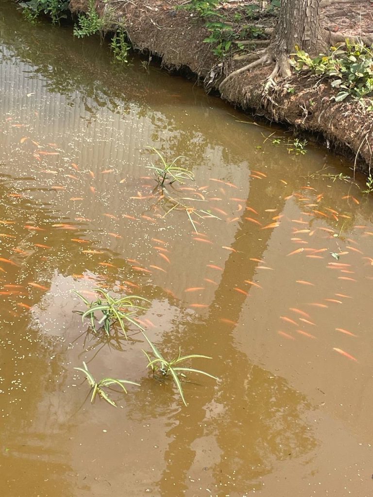 យើងលែងកូនត្រីចូលស្រះចិញ្ចឹមត្រីដែលគេជីកនៅជាប់រោងចក្រ។ ពេលធំឡើងត្រីទាំងនេះនឹងស៊ីសម្រាប់បុគ្គលិកដែលរស់នៅក្នុងអន្តេវាសិកដ្ឋាន។🐟️🐟️🐟️