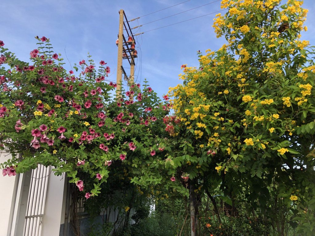 ទេសភាពផ្លូវចូលរោងចក្រនិងផ្កានៅបរិវេនខាងមុខរោងចក្រ