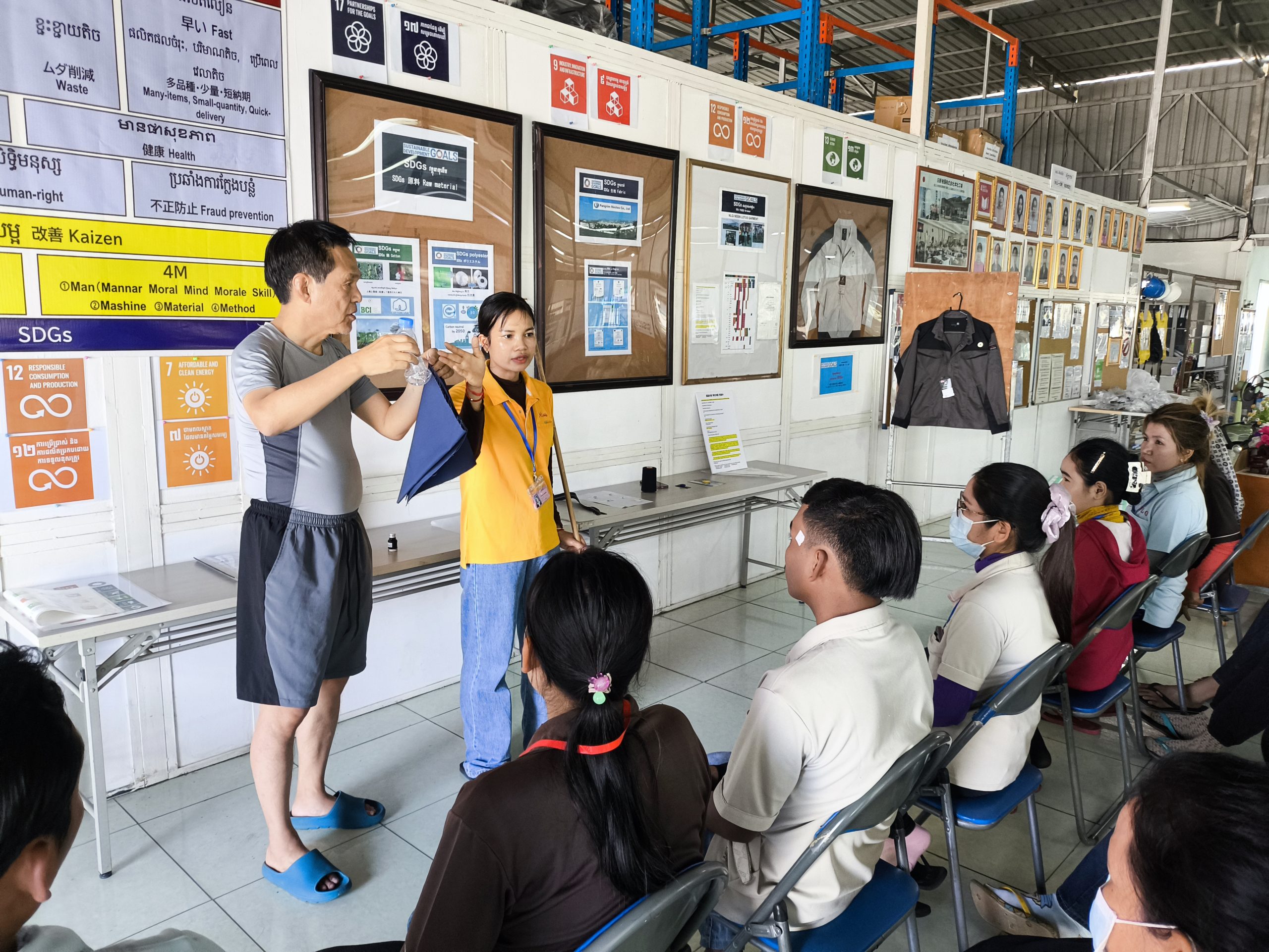សូម្បីតែនៅរោងចក្ររបស់យើងដែលដេរសំលៀកបំពាក់ធ្វើការ យើងកំពុងធ្វើអ្វីដែលយើងអាចធ្វើបានសម្រាប់ SDGs ។